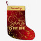 Calcetín Navideño Pequeño Red with Gold Glitter Santa Is My BFF Personalized