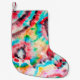 Calcetín Navideño Pequeño Rojo duro Grunge. Patrón Shibori. Cepillo dorado