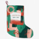 Calcetín Navideño Pequeño Rojo gráfico abstracto moderno, rosado + alegre