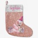 Calcetín Navideño Pequeño Rose Gold Glitter Flamenco Personalizado de Vacaci