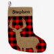 Gran ciervo burlap sobre el fondo de la plaqueta de leñador. Añadir un nombre personalizado al panel de la parte superior de la falda.