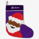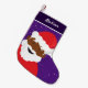 Calcetín Navideño Pequeño Santa Claus Face Purple Brown Skin Name