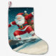 Calcetín Navideño Pequeño Santa entregando regalos de Navidad en una tabla d