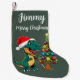 Calcetín Navideño Pequeño T-rex con sombrero santa verde