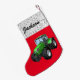 Calcetín Navideño Pequeño Tractor verde moderno personalizado en rojo