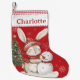 Calcetín Navideño Pequeño Un conejo chiquito construyendo un serpiente rojo