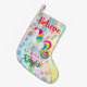 Calcetín Navideño Pequeño Unicorn Cute Rainbow Belige Añadir nombre