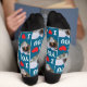 Fabricados con botellas de plástico recicladas, nuestros calcetines de poliéster premium sostenibles están impresos con tintas a base de agua y una impresión de 360 grados para ofrecer un estampado sin costuras de alta calidad y seguro para el medio ambiente para que los calcetines se vean vibrantes, incluso cuando están estirados. Estos calcetines premium son supersuaves y elásticos cuentan con una puntera y un talón reforzados para adaptarse a tu ajetreado estilo de vida y comodidad.