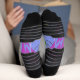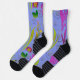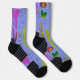 Cheerful and colorful floral pattern with abstract and botanical elements on horizontal striped background. Violet blue color.