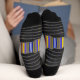 Visually dynamic pattern featuring a harmonious blend of vertical and horizontal stripes in a spectrum of vibrant colors. The design creates a sense of movement and energy, making it a perfect choice for adding a touch of modern flair to any look. The interplay of colors and lines offers a versatile aesthetic that complements both minimalist and maximalist styles.