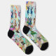 A vibrant artistic design captures scenes of simplified characters from the exuberant life in Africa, showcasing dancing figures of musicians, drummers, farmers, and shepherds. The colors intermingle like dancing waves, with hues of blue, orange,magenta, violet, and green creating a mesmerizing spectacle. The background is a swirl of bright, dynamic colors—bold pinks, blues, and yellows—creating an immersive and rhythmic environment that evokes the feeling of movement and sound. This colorful backdrop serves to enhance the overall sense of celebration and harmony.