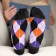 Cuidado con la Itsy Bitsy Spider mientras baja por estos calcetines con temática de Halloween con rayas de púrpura y naranja que adornan el fondo.