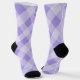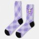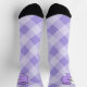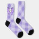 ¿Te sientes un poco asustado? Añada este calcetín de tablero de ajedrez púrpura que tiene un arco morado a cada lado con un cráneo en el medio. Perfecto para las personas espeluznantes de tu vida.