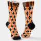 Calcetines de naranja brillante y de tripulación negra con un patrón de estilo elegante, recortados en la parte superior con rayas naranjas y negras. Ideal para la temporada de otoño, así como para Halloween y el Día de Acción de Gracias.