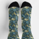 Un patrón Art Nouveau inspirado en una cosecha floral azul y crema audaz inspirado en un fondo azul oscuro