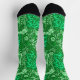 Socks in an Art Nouveau, fantasy underwater floral pattern of graceful seaweed, leaves and flowers, based on a vintage William Morris textile design, digitally enhanced and colored in shades of light to deep emerald green, with a dark green background