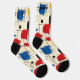 Desata tu lado artístico con estos calcetines abstractos atrevidos, que muestran pinceladas dinámicas en rojo, azul, amarillo y negro sobre un fondo crema. El patrón de rejilla geométrica añade estructura, creando un equilibrio armonioso entre creatividad y orden. Perfectos para los que marcan tendencias y los amantes del arte, estos calcetines son una adición única y elegante a cualquier outfit.