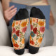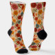 A vintage style fall color floral with soft red, yellow, pink and blue blooms against a cream background,