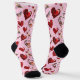 Amantes adornados con un estilo de colcha y corazones sobre una polka rosa de fondo. Diversión por El día de San Valentín.