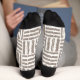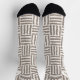 Diseño marrón y blanco con estampado rústico. Bloques de cuatro barras en diferentes ángulos forman este patrón de tierra. Inscriba su nombre en las terneras del círculo blanco.