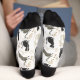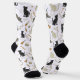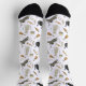 Un encantador par de calcetines de la tripulación con un completo patrón de música y gato. Los gatos negros y crema están rodeados de pequeñas guitarras, tambores y arcos de trébol. Una gran adición a cualquier colección de medias de novedad.