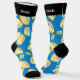 Modernos calcetines de novedad personalizados con tema de limón creados con limones acuarelas dibujados a mano sobre un fondo azul. Visita mi tienda para más productos divertidos de patrones de fruta. Arte original de Leslie Larson,