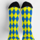 Geometric Blue and Yellow Color Harlequin Diamonds Checkered Shapes Pattern Design