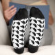 Este impresionante par de calcetines de equipo con patrones presenta una imagen de arte digital de un par de hermosos cuervos negros enfrentándose unos a otros y pareciéndose a que se están besando. Son negras con ojos turbios y picos y pies grises.