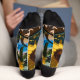 Florero sobre mesa, con paisaje en la noche de fondo, en colores luminosos. Tamaño 8,000 x 8,000, pixeles, 80 pulgadas. Arte digital en paisaje.