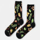 A pattern of vibrant autumn leaves on a black background. Space for your name or text in red and green on the foot. Personalize the text to make these socks your socks.