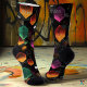 Agrega un borde vibrante a tu estilo con estos calcetines con brillo hexagonal abstracto. Con patrones de hexágonos en naranja, magenta y verde atrevidos, superpuestos con acentos metálicos sobre un fondo negro elegante, estos calcetines aportan un diseño dinámico y futurista. Perfectos para los entusiastas del arte moderno, los que marcan tendencias y aquellos que aman los accesorios únicos y llamativos.