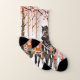 Caballo negro y caballo blanco en calcetines rojos del bosque otoñal.
