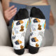 "Adorable cats adorn these cozy socks, perfect for any feline enthusiast. The seamless pattern pops against the crisp white background, making these the purr-fect addition to any cat lover's wardrobe."