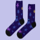 Ponte en el confort cósmico con los *Calcetines Crew Celestial Whispers*. Con estrellas dispersas en dorado, púrpura, azul oscuro y azul claro sobre un fondo de rico azul marino, estos calcetines son una mezcla soñadora de estilo y fantasía. Ideales para observadores de estrellas, soñadores o cualquiera que quiera caminar en el lado celestial de la vida.