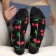 Calcetines de frutas audaces adornados con cerezas rojas brillantes sobre negro
