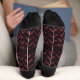 Geometric design featuring a red chevron pattern on dark red socks. Color matching space for your name or text.