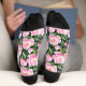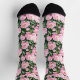 Calcetines en peonías de rosado blandas, esparcidos sobre un verde oscuro, fondo de hojas