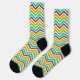 Calcetines de rayas de chevron con rayas azules, verdes, blancas, naranjas y marrones.