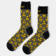 Signo redondo de advertencia de radiactividad. Patrón continuo. Color de fondo personalizado. Texto personalizado en cada calcetín.