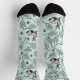 Estos lindos conejitos de menta y hojas calcetines de la naturaleza tienen ilustraciones dibujados a mano con tinta negra de conejitos, hojas y flores sobre un bonito fondo de menta. ¡Perfecto regalo de canasta de Pascua!