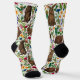 Conejos dibujados a mano y flora de bosques, hongos y berias y bichos de helechos