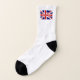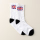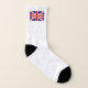 Calcetines conocidos de encargo del deporte de la bandera británica de Union Jack. Diseño inglés del orgullo con el texto personalizado. Añada su propio monograma, cita divertida, decir o lema. Reino Unido británico, símbolo del GB Gran Bretaña. Idea del regalo de cumpleaños de la novedad para él. Cree sus propios calcetines blancos del tenis para el gimnasio, la aptitud y más.