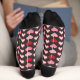 Un sock de equipo El día de San Valentín diseñado en corazones rojos y rosados