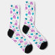 ¿Estás buscando un regalo para el amante del gato en tu vida? Les encantarán estos calcetines que tienen un patrón de garras rosadas de gato, corazones azules y prados verdes.