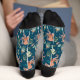 Un patrón acuático repetido con pulpos, caballitos de mar, peces tropicales, conchas, corales y algas sobre un fondo azul profundo.
