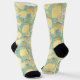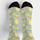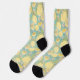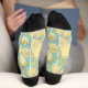 Calcetines cortos con muchos limones amarillos sobre un fondo azul verde azulado claro.