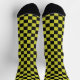Yellow and black checkerboard pattern with alternating squares. The bold contrast creates a striking, geometric visual effect.