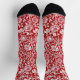 Calcetines con un patrón Art Nouveau basado en un patrón vintage de damasco floral William Morris, realzado digitalmente y coloreado en blanco sobre un fondo rojo chino profundo