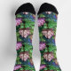 Hermoso par de calcetines de la tripulación con un patrón de loto sin fisuras en el estilo de vidrio manchado.