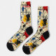 Desata tu creatividad con estos calcetines de arte de salpicaduras, que muestran salpicaduras de pintura audaces y líneas geométricas que se intersectan en un fondo crema. Con una mezcla vibrante de rojo, azul, amarillo y negro, estos calcetines combinan el caos artístico con un diseño estructurado. Perfectos para los entusiastas del arte y las personas con estilo, añaden un toque dinámico y expresivo a cualquier atuendo.